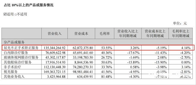 从业务结构看,公司重点发力高毛利赛道。报告期内,屈光业务整体呈现稳定增长趋势实现营业收入1.35亿元,同比增长3.26%。